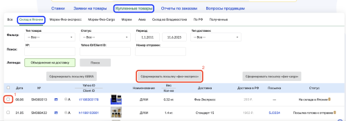 Купленные товары - Склад в Японии - Сформировать посылку физ-экспресс/физ-карго/авиа.