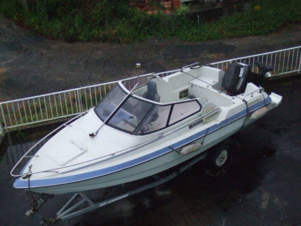 ヤンマーF221-OB オープンボート 140PS 中古です。エンジンはトーハツ140馬力の船外機のパワーステアリングです。ボートは全長6,45m、全幅2,24m、全深1,09m、船体重量は700kg、定員6名の自動排水デッキなので係留もOKです。船検切れです。写真のトレーラーは別です。名義変更済みまで保証金、金3万円を預かり致します。現物確認は何時でもOKです。090-6350-4675です。 現状渡しです。引き渡し後、、自己責任にて全て解決下さい。 宜しくお願い致します。 |