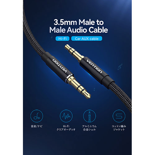 3,5 мм мужской кабельный кабель Cotton Braided Aluminum Alloy 1m Black