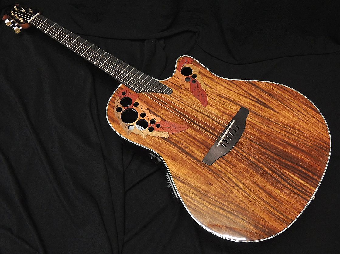 沖縄・離島以外送料無料!! セレブリティ エリート エキゾチックは、オベーション独自のマルチサウンドホール設計によるクリアな高音とバランスのとれた低音のレスポンスがライブパフォーマンスに適したギターです。 通常のセレブリティ エリートモデルのトップ材に表現の豊かなエキゾチックウッドをラミネートし、他で得られない独特な佇まいを醸し出しています。 リラコード製のミッドデプスのボディはクリアな高音域とバランスの取れた低音域を持ち、座って弾く時や立奏などどの様な演奏姿勢に対しても常に快適な演奏性を提供します。 セレブリティ エリートには、オベーション製スリムライン ピックアップに3バンドEQにオンボードチューナーを備えたOP-4CTプリアンプを組み合わせ、サウンドセッティングが容易に可能で、様々な場所でオベーション エリート サウンドを奏でる事が可能です。 Selected precious wood top; scalloped, quartersawn X-Bracing Multi Soundhole Mid-depth Lyrachord〓 Body Nato neck, ovangkol fingerboard and bridge Scale 643 mm, nut width 42.8 mm Multi hardwood epaulettes Abalone-Dot-Inlays Black body binding with abalone inlay Diecast Ovation machine head, chrome Ovation CP-100 Slimline Pickup, OP-4CT Preamp with tuner Chrome Ovation logo and hardware ソフトケース付属 定価120,000円(税抜) 送料無料(沖縄・離島以外) |