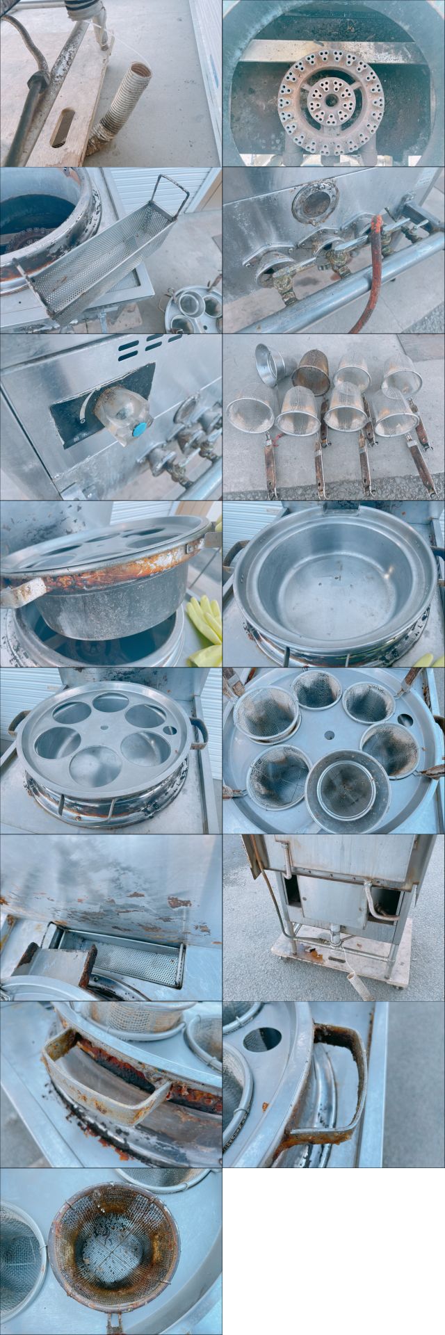 ■状態など商品説明 LPガス専用モデルです。都市ガスではご利用いただけませんのでご注意ください。 全体的に経年使用による汚れがあります。 清掃は行っておりますが、取り外し不可パーツに関しては外しておりませんので、落とし切れていないよごれが多数あります。 振りかごやごみかご、ひしゃくや回収ざるは付属しておりますが、清掃を行っても落としきれない汚れがあります。 茹で鍋は内部は清掃済みです。外側も落としきれない汚れがあります。 後部排水ホースは破けておりますので、設置時に交換をお願いいたします。 現状品でのお渡しとなりますので、上記内容をご了承いただける方のみ入札をお願いいたします。 詳細は掲載画像を参照してください。