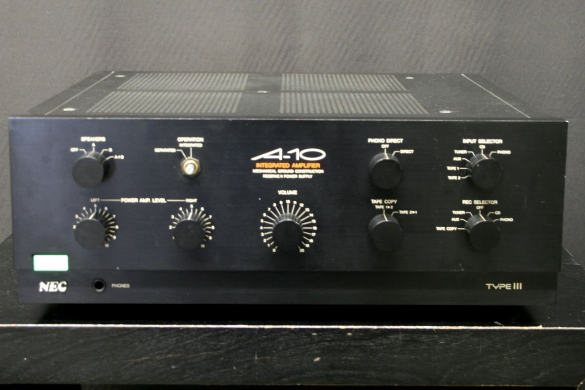 [必ずお読み下さい] 本商品はジャンク品になります。 動作保証や返品・交換・返金などは一切お受けできません。 出品時に簡易チェックのみ行っておりますが、 正常な動作のお約束ができない為、ジャンク品になります。 チェック内容は、[状態]をご参照下さい。 詳細なチェックや技術的ご質問には一切お答え出来ません。 部品取り又は修理するなど、ジャンク品としてご活用下さい。 神経質な方の入札はお控え下さい。 ジャンク品の為、ノークレーム、ノーリターンでお願いします。 [状態] シリアル番号:710227 チェック時は、電源入りました。 チェック時は、入力端子CDから繋いで、出力A及びBから音出ました。 上記以外の入出力は未チェックになります。 各端子類及びスイッチ、ボリューム類に若干のガリが出ます。 メインボリュームにガリあり、音量を0に合わせても左チャンネルの音が漏れる時があります。 メインボリュームにギャングエラー(左右の音の大きさが多少違う)の症状があります。 パワーアンプレベルの左右ボリュームにガリなどの症状が出ます。 ノブが1個欠品しています。 全体的に本体に汚れや傷みなどがあります。 ネジ、金属金具類に汚れやサビ・緑青などの使用感があります。 背面パネルにサビ汚れなどの使用感があります。 メインボリュームのノブに斑点状の塗装剥がれがあります。 その他は未チェックになります。 ※ジャンク品の為、上記内容の保証は一切ありません。 追記1:測定機器などでチェックはしていません。 追記2:音出しチェックは約10分程度の簡易チェックで行いました。 追記3:動作時間で症状が変わりますので、あくまで部品取りのジャンク品としてご活用下さい。 [付属品] 取扱説明書(シミ汚れあり) [製品仕様] ■ 型 式:プリメインアンプ ■ 外形寸法:幅430x高さ165x奥行き485mm ■ 重 量:25kg ■ 備 考:1986年発売、定価:118,000円 ※中古商品の保証などは、こちらをご確認下さい。 →詳細を見る。 いたずら入札防止の為、 総合評価でマイナスの方の入札は当店の判断で取り消す場合が御座います。 評価の悪い方やマイナス評価の多い方も同様に入札を取り消す場合が御座います。 |
