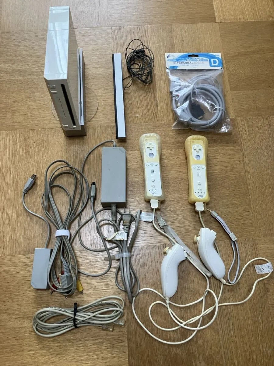Nintendo Основное игровое программное обеспечение Wii (5 штук), книга захвата (3 штуки), инструкция по эксплуатации и т. Д. Все аксессуары включены, включая серийный номер. Для игры есть два пульта дистанционного управления, но один из пультов дистанционного управления не работает, потому что утечка батареи происходит в течение многих лет. Может потребоваться ремонт. С тех пор Я не пользовался им много лет, со временем происходит ухудшение, но было подтверждено, что он подключен к телевизору, как на последней фотографии.