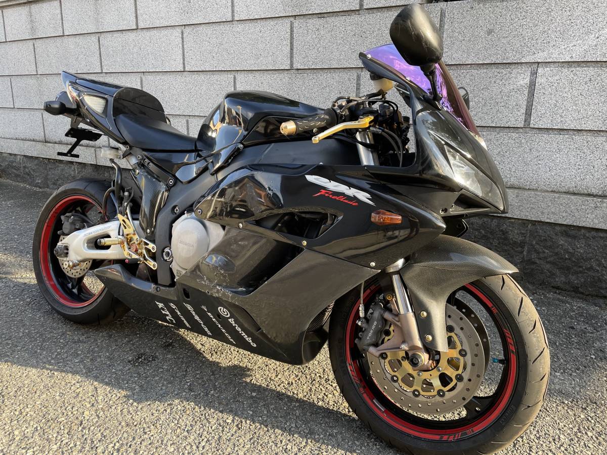 初年度登録H16年 アクラポビッチ CBR1000RR SC57 書類、鍵付き 高価アクラポビッチマフラー、バックステップとカスタムパーツ装備。最後までお読み頂きご検討ください。 走行距離56259キロ(書類記載距離:R2年51400キロ、H30年42500キロ)、タイヤ前6後7分山程度です。電装OK(バッテリー弱)です。 セルによるEG始動をし敷地内を走りました。EG気になる異音ありませんでした。 走る、曲がる、止まるできます。 中古車ですので傷、カケ、ワレ、錆、汚れ、その他、見落とし等あります。 キャンセル、クレーム、リターンは受付できませんので間違いの無い様にご入札お願いします。 気になる方は、現車確認、質問をしていただき、ご納得をして頂き!ご入札をお願いします。 すべての車両は、ご使用、ご利用前に各種点検整備、メンテナンスをしてください。 メンテナンスできない方は、お近くのバイクショップでお買い求めください。 自己紹介欄を御覧ください。 発送に手配のお手伝いも出来ます。 市町村お教えください。陸送料金等お調べできます。発送に手配のお手伝いも出来ます。 ※ 画像現状未整備車両です。 ※ 上記、下記共の内容をご理解、ご了承の上、ご入札をしてください。 保管中にバッテリー上がって不動になっています。