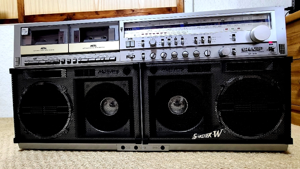 シャープ GF-919 新品で購入し使用しました。動作確認は正常でしたが、カセットが無いので音楽の確認は無理でした。キズは画像でも確認してください。上左にシールが剥がれた後のようと横は塗装が剥がれたようなキズが有ります。ボリュームは回すとバリバリと音がします。ステレオから繋げてスピーカーとしても使用してました。キレイですが古いので、そこは個人の判断でお願いします。ノーリターン、ノークレームで宜しくお願いします。送って欲しい方はメッセージ入れて下さい。080-2554-6844 ラジカセについてまで |
